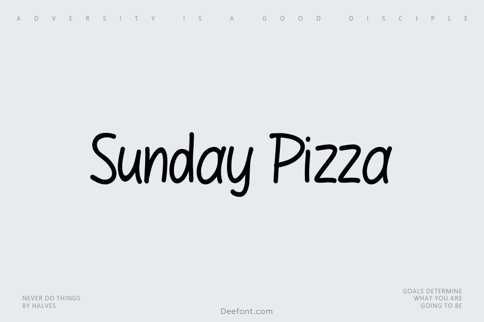 Sunday Pizza is a playful handwritten script font designed by Khurasan. With its unpretentious lines and casual strokes, this contemporary display typeface delivers charming and distinctive character perfect for creative projects. Ideal for logos, posters, magazine covers, book designs, and banners, Sunday Pizza brings a delightful, modern flair to your typography. The font’s friendly aesthetic makes it an excellent choice for projects requiring casual elegance and creative expression.