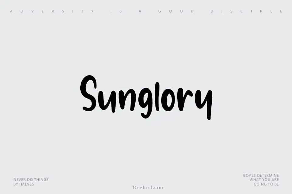 Sunglory is a delightful handwritten script font characterized by its light, flowing strokes and playful letterforms. With soft, rounded edges and cheerful personality, this versatile typeface excels at bringing warmth and approachability to any design project. Ideal for summer-themed posters, wedding invitations, kids’ activities advertisements, social media promotions, product packaging, and festive branding initiatives. The font’s friendly aesthetic combined with its smooth curves makes it equally suitable for both display and decorative applications, adding charm to personal items and contemporary creative work.