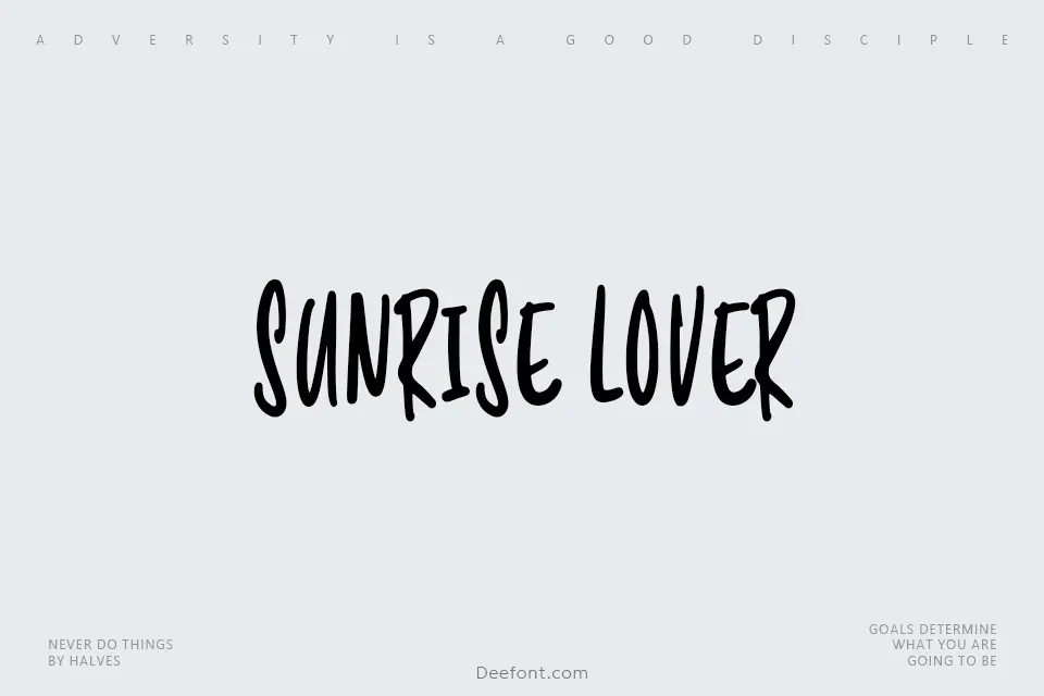 Sunrise Lover is an engaging handwritten display font featuring soft, flowing strokes and cheerful letterforms that radiate warmth and optimism. With its friendly personality and decorative flair, this typeface excels in creating eye-catching designs for posters, greeting cards, wedding invitations, festive announcements, and social media graphics. The font’s playful yet elegant character makes it ideal for branding, packaging, and any project requiring a youthful, approachable aesthetic that captures attention without sacrificing readability.