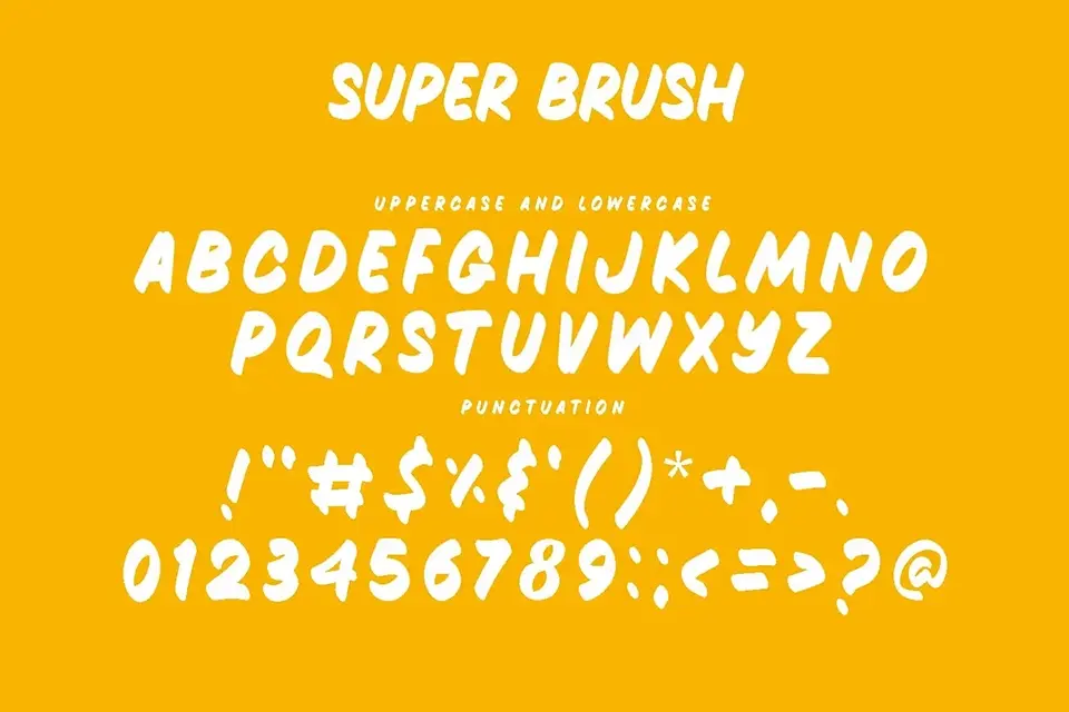 Super Brush is a bold, contemporary handwritten font that redefines artistic expression through smooth, fluid brush strokes. Designed to capture the essence of hand-crafted artistry, this robust script features organic letterforms perfect for branding, packaging, headlines, and creative projects requiring personal impact and visual depth.