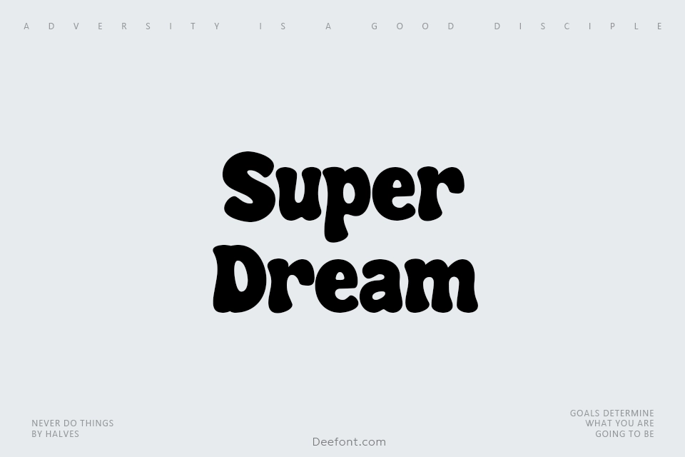 Super Dream is a display font that exudes groovy vibes with its extra-bold weight and curvaceous letterforms. Featuring playful flourishes perfect for retro-themed projects, this typeface captures the essence of the psychedelic era. Ideal for album covers, party invitations, and funky poster designs, it brings eye-catching style and bold unique identity to branding projects. Its distinctive character set of 451 glyphs makes it perfect for designers seeking nostalgic flair and creative expression.