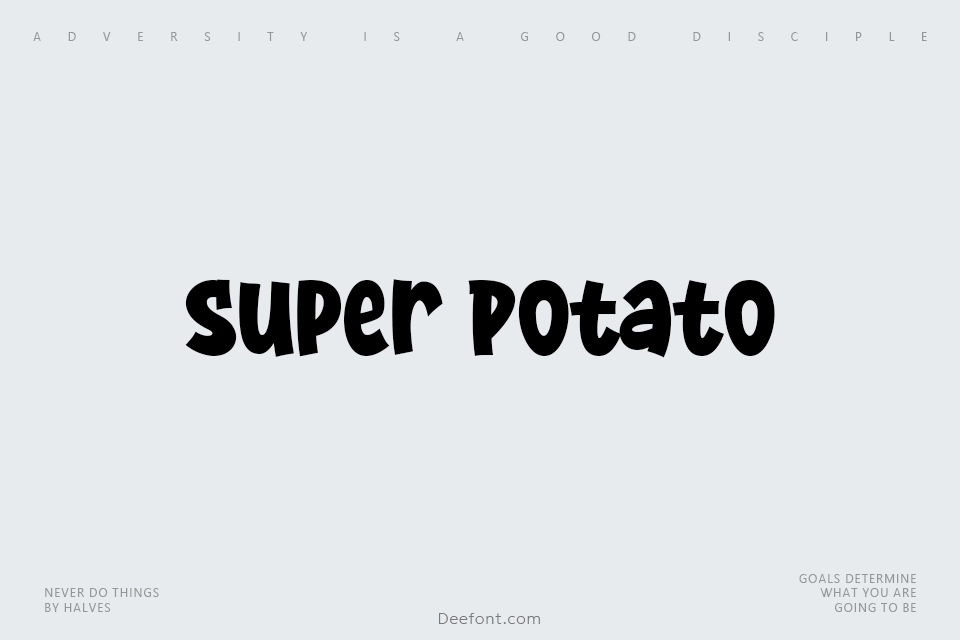 Super Potato is a vibrant and playful display font that brings imaginative flair to any creative project. Designed with exaggerated curves and thick strokes, this cartoon-inspired typeface features a whimsical blend of elegantly styled characters and mischievous design elements. Perfect for eye-catching headlines, spirited branding initiatives, and playful poster designs, Super Potato injects personality and exuberance into your typography while maintaining exceptional character consistency throughout both uppercase and lowercase letters.