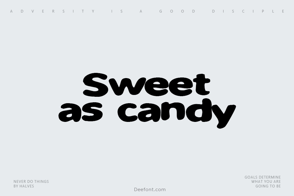 Sweet as candy is a playful and bold display font featuring rounded, bubbly characters that exude joy and whimsy. Designed with thick, soft-edged letters reminiscent of candy and marshmallows, this typeface combines smooth curves and consistent stroke width for a friendly, approachable aesthetic. Perfect for children’s books, playful branding, festive invitations, party flyers, and toy packaging, this decorative font brings creative energy to any project requiring a touch of fun and personality.