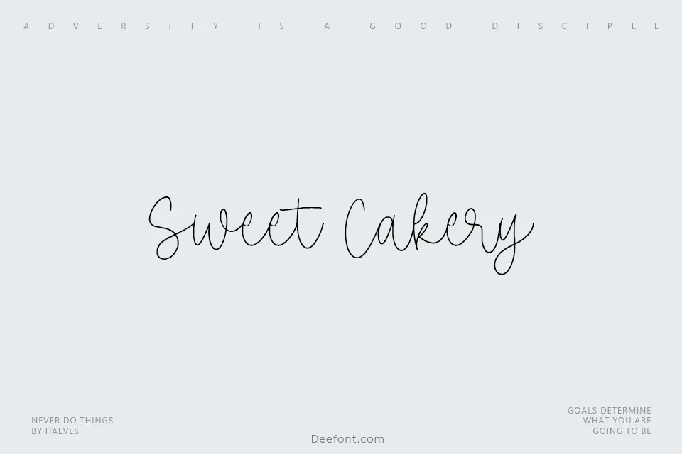 Sweet Cakery is a charming monoline handwritten script font featuring clean, smooth curves and effortless elegance. This free typeface delivers understated sophistication with fluid letterforms ideal for bakery branding, product packaging, greeting cards, poster titles, and festive invitations. Perfect for designers seeking a friendly yet polished aesthetic.