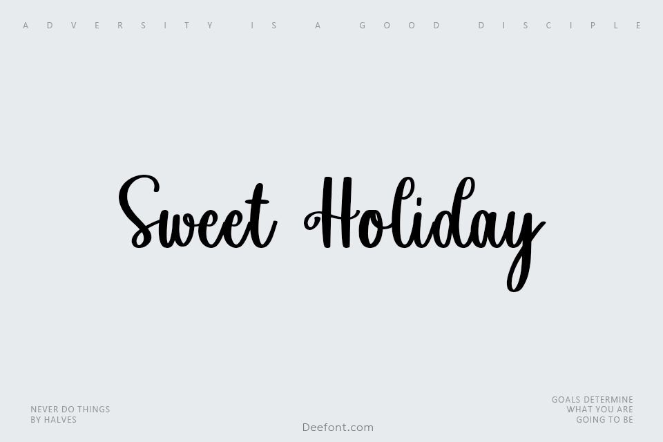 Sweet Holiday is an elegant script font crafted by Fikryal studio with a charming, delicate aesthetic. This handwritten display typeface excels in creative projects including Christmas cards, wedding designs, branding, logos, quotes, photography, birthday cards, and festive signage. With 302 glyphs supporting multiple languages, the font delivers smooth, flowing letterforms perfect for designers seeking a sophisticated yet playful typography solution.