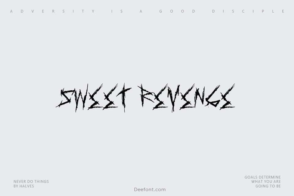 Sweet Revenge is a distinctive display font that perfectly captures a playful yet edgy aesthetic. With its bold, eye-catching letterforms and slightly distressed character, this typeface brings personality and attitude to any creative project. Originally designed in 2012, Sweet Revenge combines decorative flair with readable functionality, making it ideal for posters, packaging, headlines, and branding materials. The font’s fancy styling and horror-inspired elements create a memorable visual impact that stands out in design compositions. Whether you’re crafting retro-inspired graphics or contemporary creative work, Sweet Revenge delivers distinctive typographic solutions for designers seeking unique and impactful letterforms.