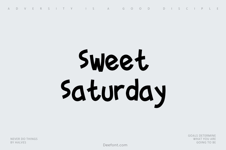 Sweet Saturday is a distinctive display font designed by Display Studio, offering 232 carefully crafted characters with multilingual support. Perfect for creative projects including brand logos, invitations, greeting cards, and poster designs, this charming typeface combines playful elegance with contemporary styling. The font features smooth, rounded letterforms that deliver a friendly, approachable aesthetic suitable for modern design applications requiring distinctive visual impact and personality.