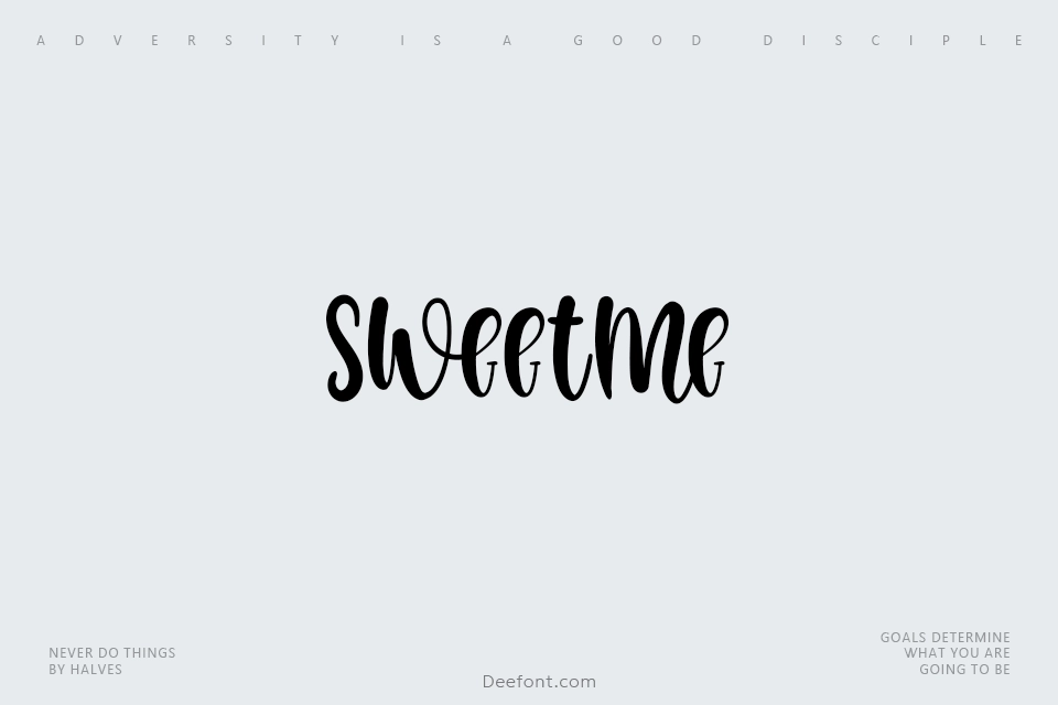 Sweetme is a charming handwritten script font designed by PiPi Creative that exudes warmth and personality. Its seamless flow captures genuine expression, making it perfect for designs seeking intimacy. The condensed style contributes to elegant appearance with graceful readability. Visually appealing and practical, Sweetme shines in greeting cards, branding materials, and social media graphics, inviting connection while maintaining sophisticated allure.