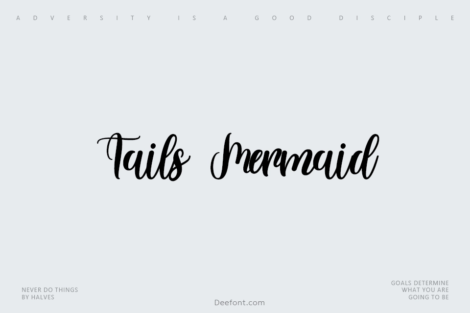 Tails Mermaid is a romantic and elegant script font designed for creative projects. This versatile typeface combines cute and fancy aesthetic, featuring decorative swashes, alternate glyphs, and ligatures. Perfect for greeting cards, invitations, headlines, and branding applications. With its whimsical character and broad range of uses, Tails Mermaid adds a delicate, sophisticated touch to any design work while maintaining impressive readability for both display and decorative purposes.