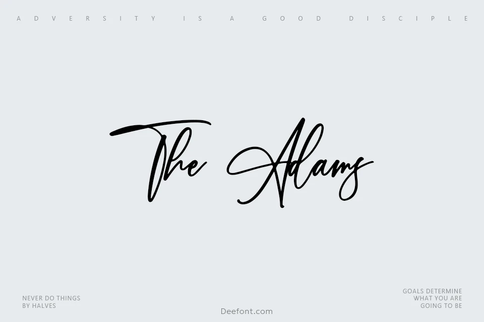 The Adams Font is a modern handwritten signature font that exudes elegance and sophistication with its graceful curves and fluid strokes. This beautiful script typeface adds a personal touch to any design project, making it ideal for wedding invitations, luxury brand logos, boutique fashion websites, and lifestyle blogs seeking to convey an intimate and authentic voice. The Adams Font is suitable for various projects including logos, branding projects, homeware designs, product packaging, mugs, quotes, posters, shopping bags, t-shirts, book covers, name cards, invitation cards, greeting cards, labels, photography, watermarks, and special events. The font features standard glyphs, alternates and ligatures, and is PUA encoded which means you can access all of the glyphs and swashes with ease. The Adams Font works on both PC and Mac systems and is accessible in Adobe Illustrator, Adobe Photoshop, Adobe InDesign, and even Microsoft Word. This exquisite font lends an air of exclusivity and charm to creative endeavors with its refined handwritten style.