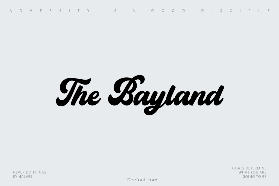 Bayland is a bold retro script font that evokes 1960s aesthetics with vintage charm. This display typeface features a distinctive hand-lettered style perfect for adding nostalgic flair to logos, invitations, wedding cards, and packaging designs. The font includes an extrude variant for creating layered 3D effects, making it ideal for projects requiring authentic retro character and visual impact.
