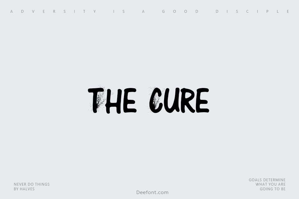 The Cure is a distinctive script font created by Billy Argel, characterized by its dynamic dripping and grunge aesthetic. This typeface delivers a bold, contemporary look perfect for creative projects seeking edge and personality. With its flowing letterforms and artistic flair, The Cure brings a unique visual identity to posters, headlines, and branding applications that demand attention and creativity.