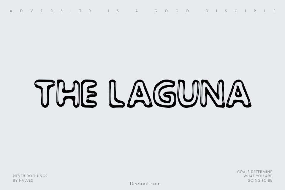 The Laguna is a playful and bold decorative display font featuring a thick outline that gives each character a three-dimensional appearance. Designed with uppercase and lowercase letters, this font combines comic and cartoon-like aesthetics with consistent stroke width, making it ideal for eye-catching designs. Perfect for headlines, logos, posters, and playful branding projects requiring a lively and dynamic feel.ffonts