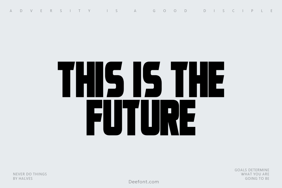 This Is The Future is a futuristic and modern display font created by Darrell Flood. This sci-fi inspired typeface features clean, geometric letterforms with a tech-forward aesthetic that makes it ideal for titles, headlines, and creative projects requiring a cutting-edge feel. With its sleek design and versatile character set, this font brings innovation and contemporary style to digital and print media.