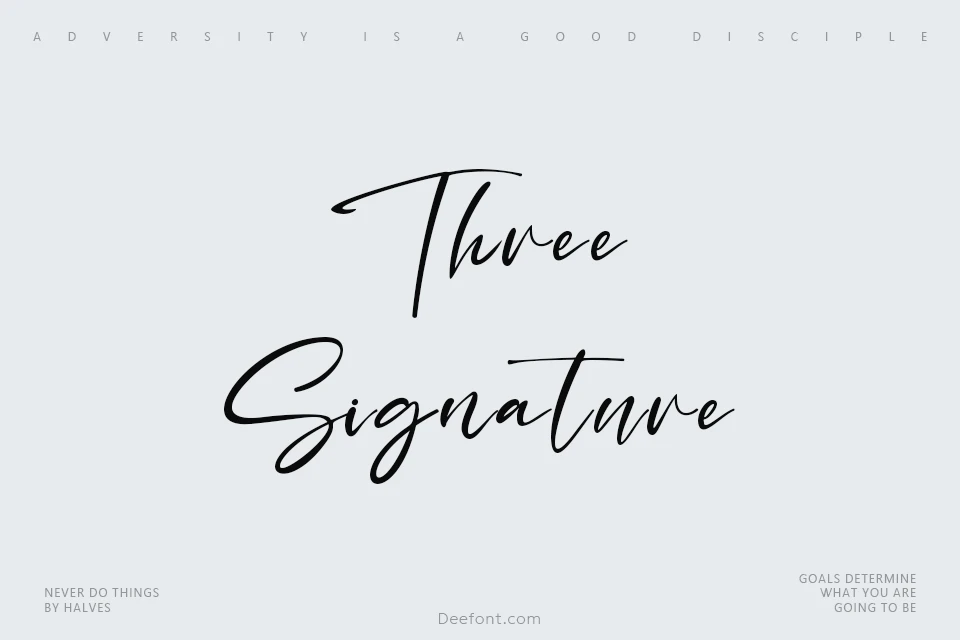 Three Signature Font is an elegant script typeface that beautifully mimics natural handwriting with a sophisticated touch. The font features fluid, connected letters that create a seamless flow, making it both stylish and readable. With 247 beautifully designed characters, it includes embellished uppercase letters for added flair, while maintaining smooth and consistent lowercase letters. The font combines elegant and casual styles, making it perfect for wedding invitations, personal branding, greeting cards, elegant stationery, perfume brands, posters, and magazine covers. Its versatile design presents a simple, elegant, and luxurious impression, ideal for projects requiring a personal, handwritten feel.