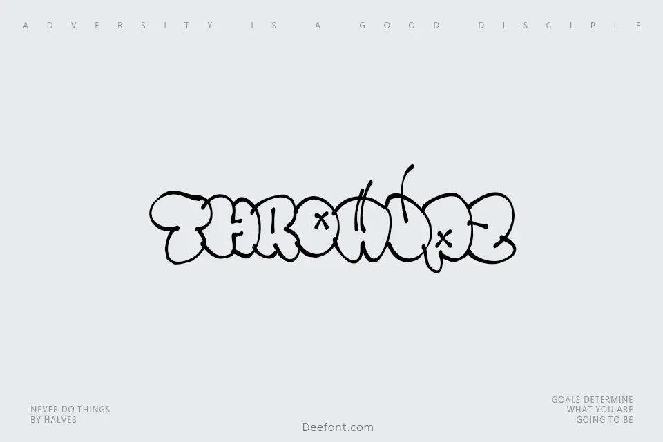 Throwupz is a bold graffiti-inspired script font featuring bubble-like letters with interconnected continuous lines. Designed with urban flair and dynamic flow, each character is enhanced with unique embellishments including crosses and dots, creating an energetic and expressive aesthetic perfect for street art designs, music album covers, and edgy branding projects.