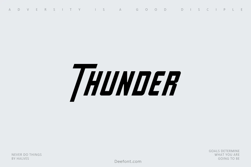 Thunder Font is a modern display typeface designed for impactful headlines and contemporary design projects. This bold and dynamic font features clean lines with a condensed structure, making it perfect for posters, logos, branding materials, covers, banners, and large-scale artwork. The typeface combines modern elegance with artistic expression, delivering strong visual impact wherever it’s applied. Thunder Font is specifically crafted for short headlines and display purposes, offering designers a powerful tool for creating eye-catching typography that demands attention.