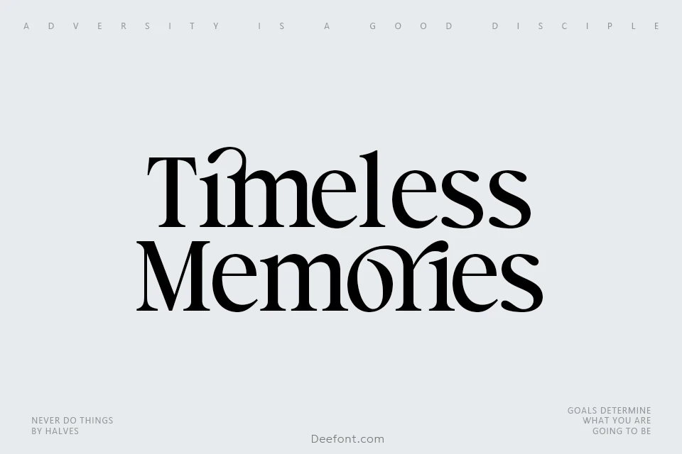 Timeless Memories is a stylish editorial serif font with a modern classic look. It features alternatives and binders, making it perfect for creating stunning logos, quotes, blog posts, branding projects, magazine imagery, wedding invitations, and more. With four styles-Regular, Italic, Condensed, and Condensed Italic-this font family offers versatility and elegance for a wide range of creative applications.