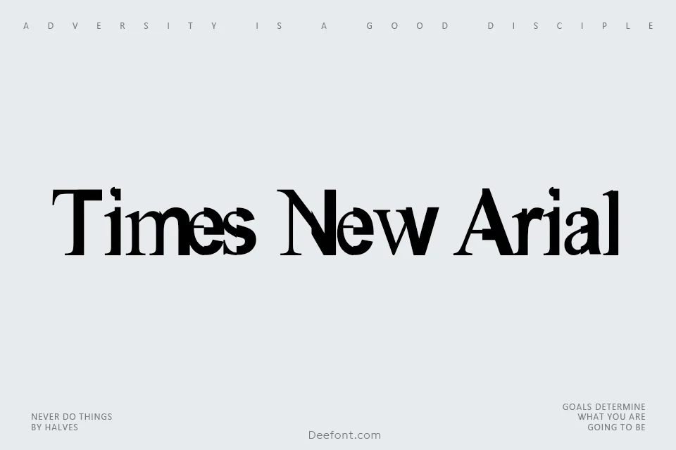 Times New Arial is a hybrid font that ingeniously combines the elegance of serif typography with the clean, modern lines of sans-serif design. This distinctive typeface merges the sophisticated characteristics of Times New Roman with the geometric precision of Arial, creating a versatile font suitable for both display and body text applications. With its unique blend of traditional and contemporary design elements, Times New Arial offers designers a creative option for projects requiring both visual impact and readability.