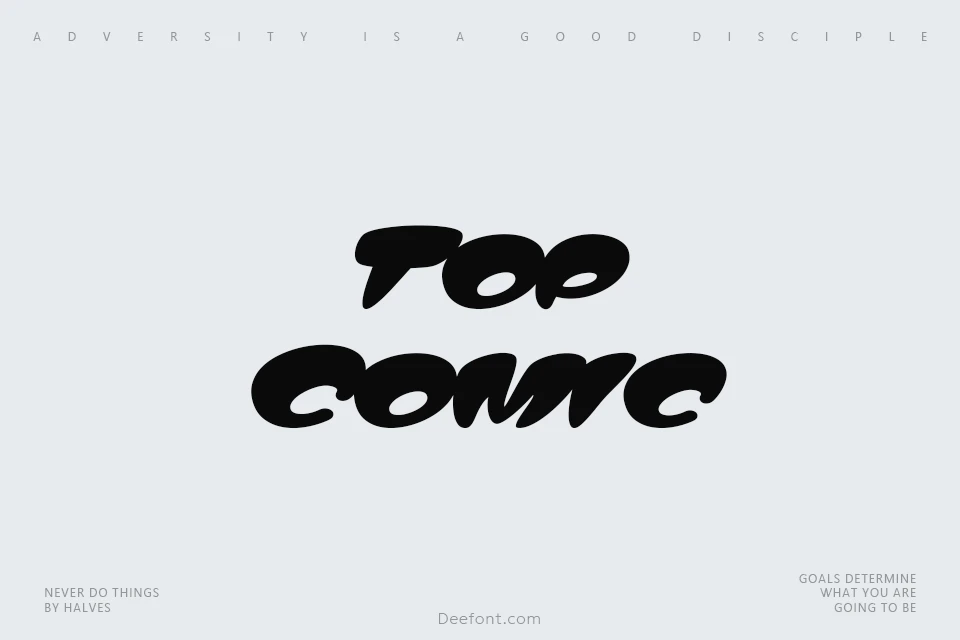 Top Comic Font is a bold and dynamic typeface designed by Måns Grebäck, perfect for adding energy and personality to your projects. With its graffiti-inspired style and playful cartoon aesthetic, this font is ideal for comic book titles, posters, logos, and creative designs that demand attention. Its thick strokes and rounded edges create a sense of fun and vibrancy, while maintaining excellent readability. Whether you’re crafting a retro comic vibe or modern graphic art, Top Comic Font brings a unique flair to your text. Versatile and eye-catching, it’s a great choice for designs that need bold expression and creative impact.