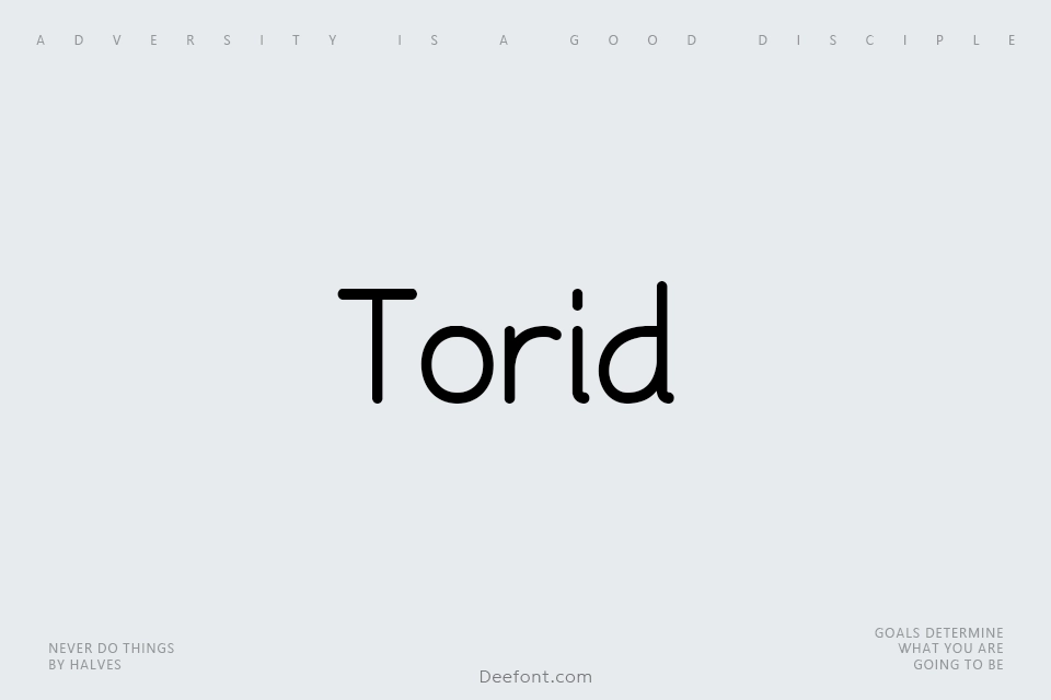 Torid is a clean and versatile sans-serif typeface designed with understated elegance and modern minimalism. Featuring consistent stroke weight and slightly rounded terminals, it delivers a friendly, approachable aesthetic perfect for both headings and body text. Ideal for logos, headlines, posters, and contemporary design projects seeking simplicity and refinement.