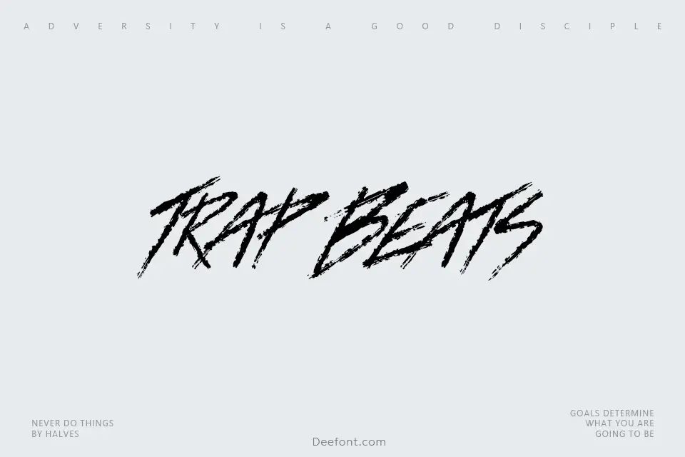 Trap Beats is a distinctive handwritten script display typeface featuring textured brush strokes with a dynamic slant, creating an authentic raw aesthetic perfect for music industry applications. The font excels in album covers, streetwear branding, graffiti art, horror movie titles, and edgy poster designs. With 198 carefully crafted characters including expressive letterforms, it delivers visual impact for logos, headlines, and urban design projects seeking authentic hand-drawn authenticity with contemporary edge.