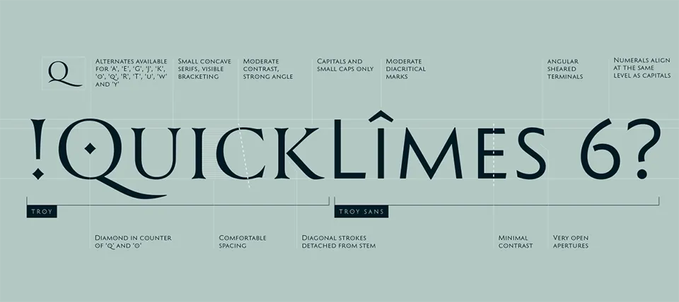 Troy Sans Font font is a contemporary sans-serif titling typeface designed to bring a modern yet timeless feel to your creative projects. With its single weight and small capital letterforms, Troy Sans offers a unique blend of classic inscriptional inspiration and modern design sensibility. The font features several alternate letterforms, including medieval-inspired variants for characters like ‘A’, ‘E’, and ‘G’, and distinctive alternates such as dotted and dotless versions of ‘O’ and ‘Q’. With multiple ampersand styles and eighteen ligatures reminiscent of Ancient Roman inscriptions, Troy Sans is ideal for branding, editorial design, and display purposes, offering both formality and versatility in one package.