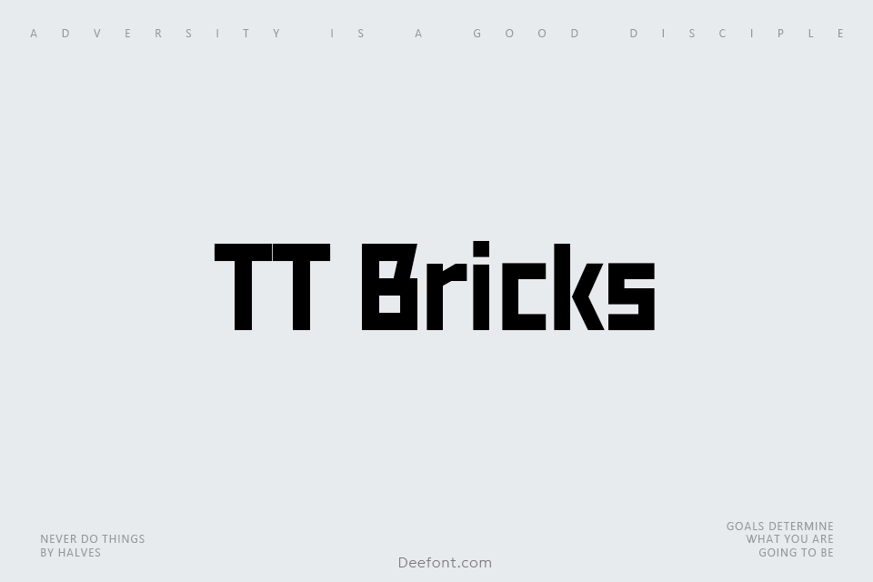 TT Bricks is a geometric sans-serif display font featuring clean lines and simple triangle-rectangle forms inspired by early Soviet constructivist design. This versatile 16-weight typeface family (Hairline through Black with italics) excels in mobile apps, corporate websites, and print layouts, delivering contemporary visual impact with its exaggerated simplicity and legibility at all sizes. Perfect for modern branding projects requiring bold, structured typography with industrial aesthetic appeal.