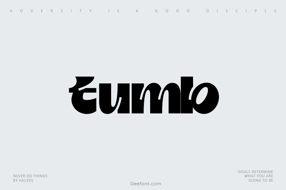 Tumb Font is a quirky, bold display sans serif featuring stylized ink traps and a unique retro bubble vibe. Perfect for adding a fun, sophisticated playfulness to posters, branding, logos, magazines, and more, Tumb Font evokes classic elegance and old-world craftsmanship, making it ideal for creative endeavors seeking a vintage touch.