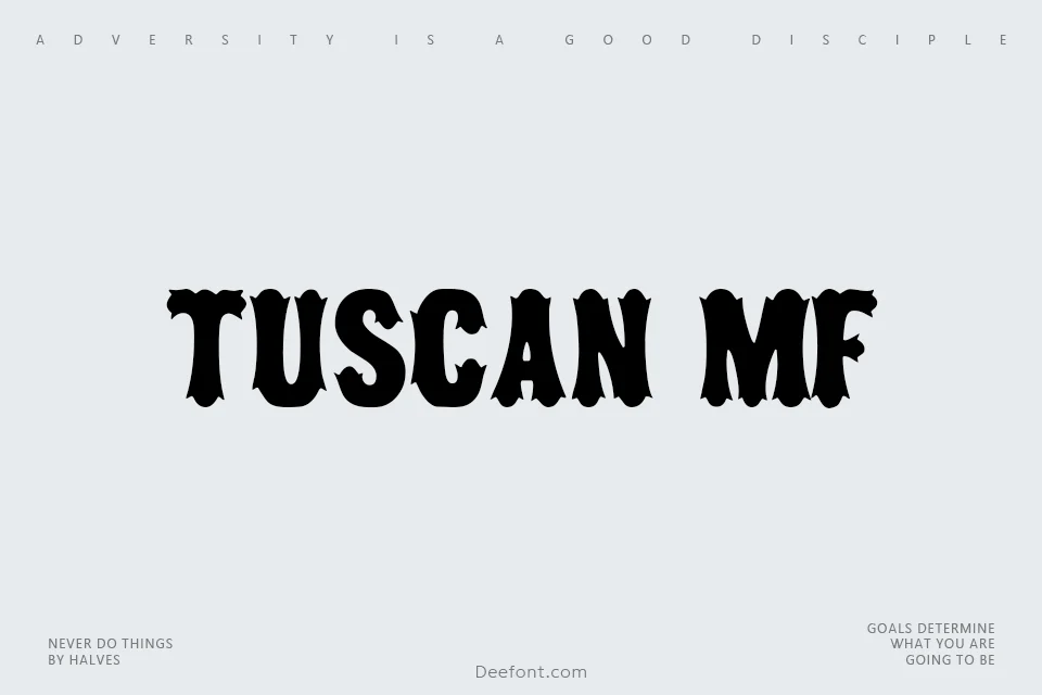 Tuscan MF is a distinctive display font that evokes the spirit of the Old West and carnival aesthetics. With its bold, ornamental character and vintage flair, this typeface brings dramatic presence to posters, headlines, and creative projects seeking nostalgic charm and theatrical impact.