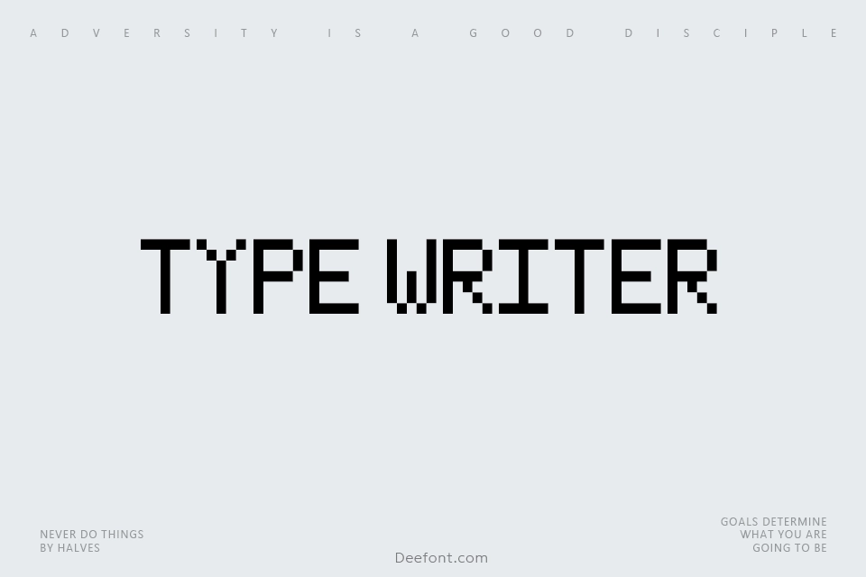 Type Writer is a classic bitmap font that captures the authentic charm of vintage typewriter aesthetics. Designed with monospaced character widths and pixelated details, this 8-pixel font delivers nostalgic appeal perfect for retro-inspired projects, posters, vintage branding, and creative digital designs. Its distinctive geometric letterforms and mechanical character make it ideal for projects seeking an authentic typewritten appearance.