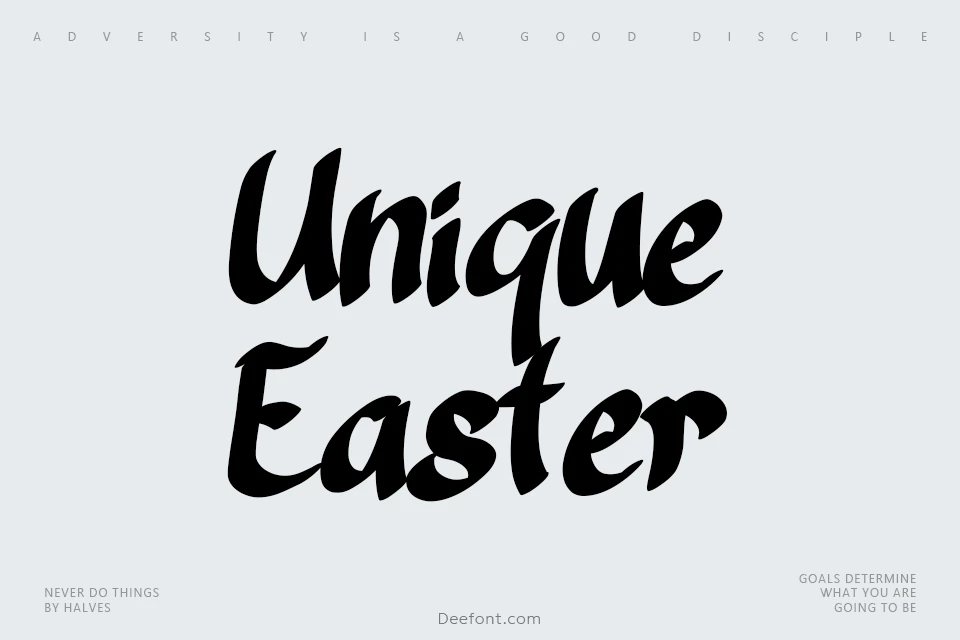 Unique Easter Font is a playful and decorative display typeface designed specifically for Easter-themed projects. Featuring whimsical, hand-drawn letterforms and a festive spirit, this font is ideal for greeting cards, invitations, posters, and creative branding that needs a touch of seasonal charm.