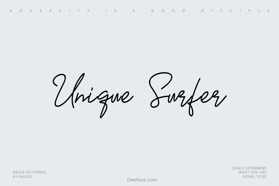 Unique Surfer is a fashionable handwritten script font featuring a distinctive monoline design with a quirky, stylish touch. Developed by Creaditive Design, this typeface brings a casual yet sophisticated charm to creative projects. With 237 glyphs supporting 38 languages, it offers versatility for both digital and print applications. The font’s unique aesthetic combines handwriting warmth with contemporary design sensibilities, making it ideal for branding, headlines, and creative typography projects seeking a personal, engaging character.