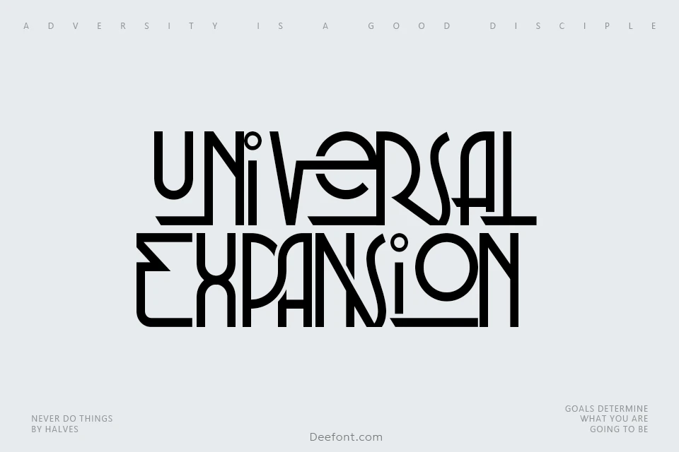 Universal Expansion Font is a classic retro vintage all-caps, semi-condensed sans-serif typeface with an Art Deco touch. Designed to blend modern aesthetics with vintage Art Deco influences, it features elongated ligatures, bold symmetrical shapes, and sleek lines, making it ideal for refined, eye-catching designs.