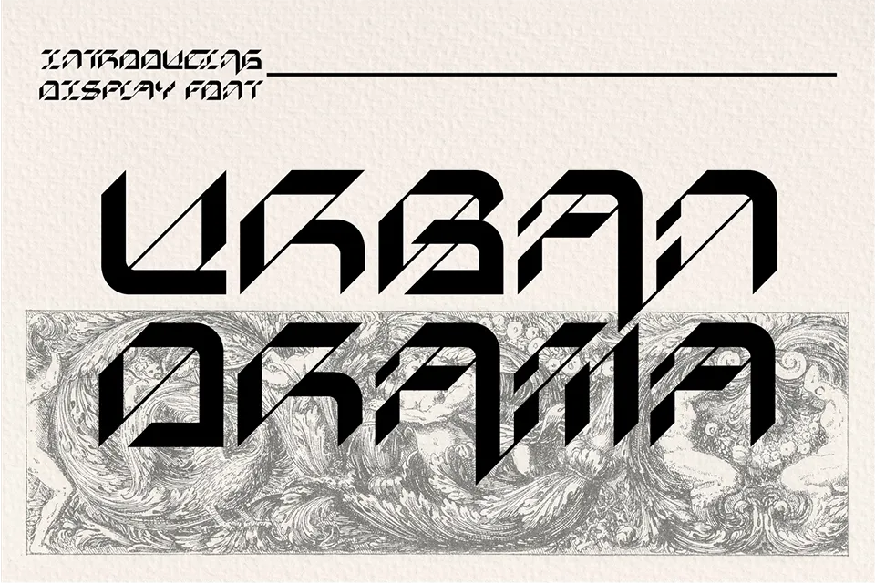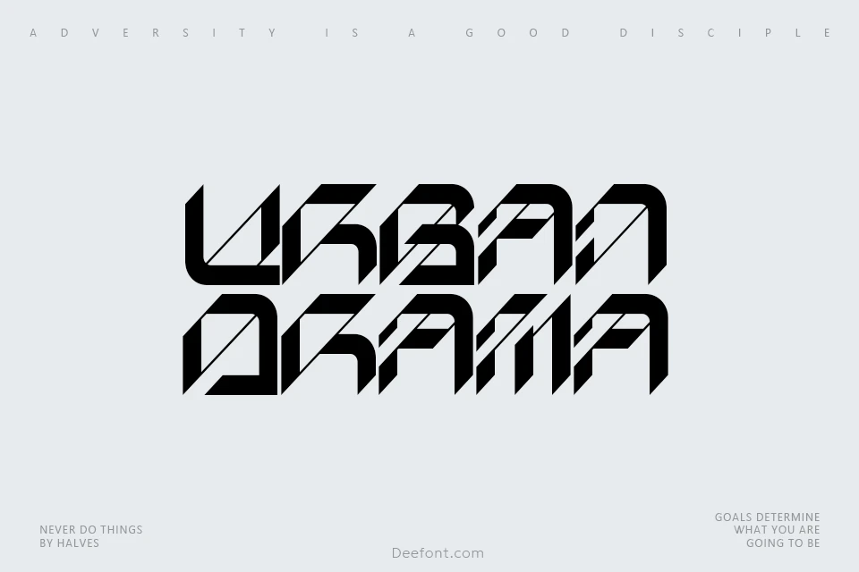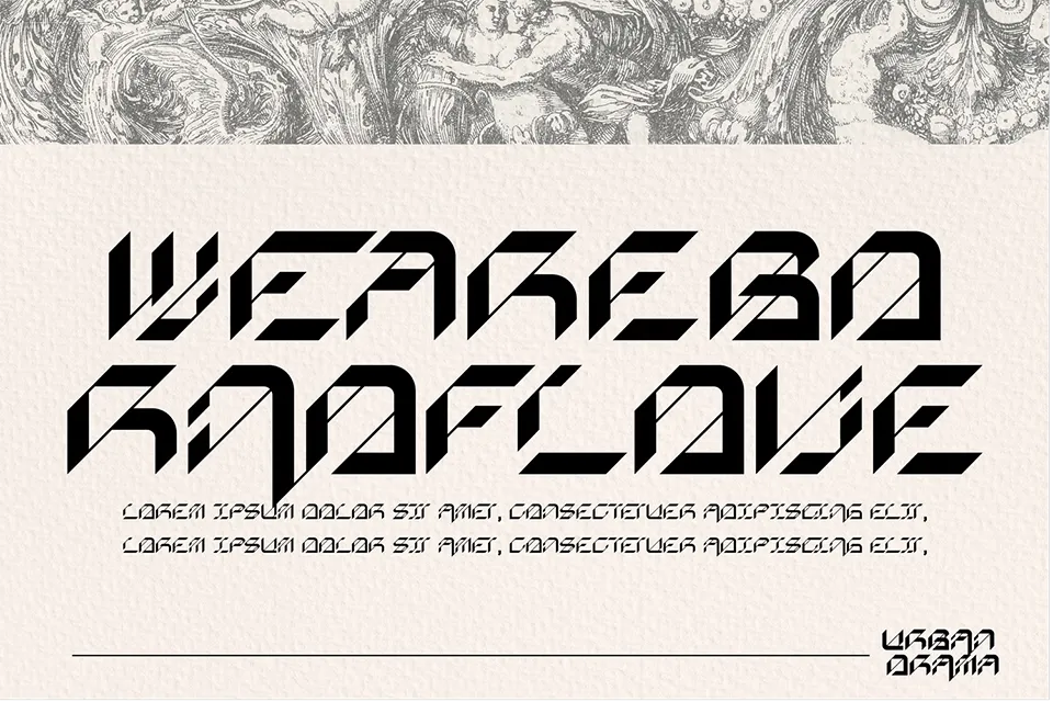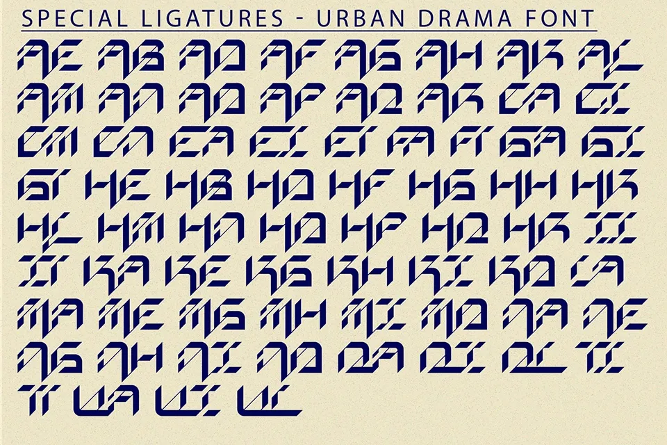 Urban Drama Font is a bold and futuristic display typeface that commands attention with its sharp, angular letterforms and modern aesthetic. Inspired by the dynamic energy of urban environments, this font is perfect for projects that require a striking and edgy look. Its geometric structure and unique design make it ideal for posters, headlines, branding, and digital artwork. Urban Drama Font captures the essence of contemporary creativity, blending innovation with a dramatic flair. Whether used for street-inspired designs or futuristic themes, this font adds a powerful and distinctive character to your visuals, ensuring they stand out with confidence and style.