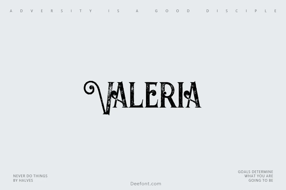 Valeria is a bold grunge display font created by Peter Olexa, featuring a vintage retro aesthetic perfect for eye-catching headlines and creative projects. This distinctive typeface combines strong geometric strokes with grungy texture, delivering a unique style ideal for posters, album covers, invitations, and branding materials. The font’s bold personality makes it stand out in any design composition while maintaining excellent readability.
