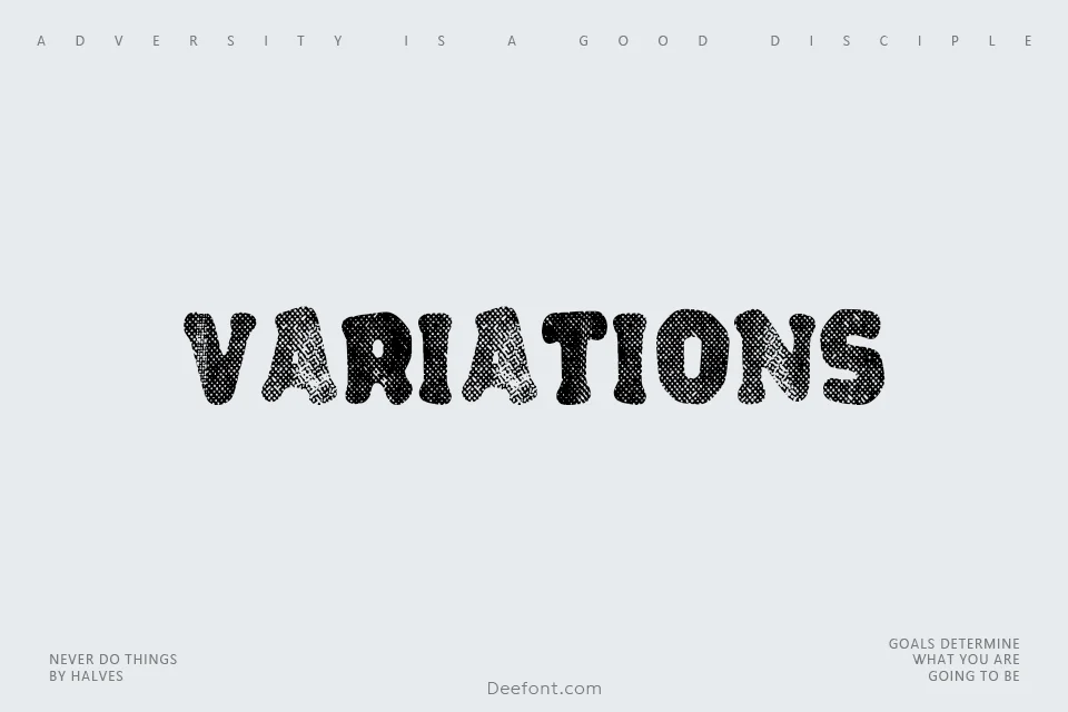 Variations is a distinctive display font that brings creative flair and visual interest to your design projects. Crafted by imagex, this versatile typeface combines decorative elements with contemporary style, making it perfect for posters, headlines, and eye-catching graphics. The font’s unique character and playful design aesthetic provide designers with an excellent tool for creating memorable typography that stands out across various creative applications and media.