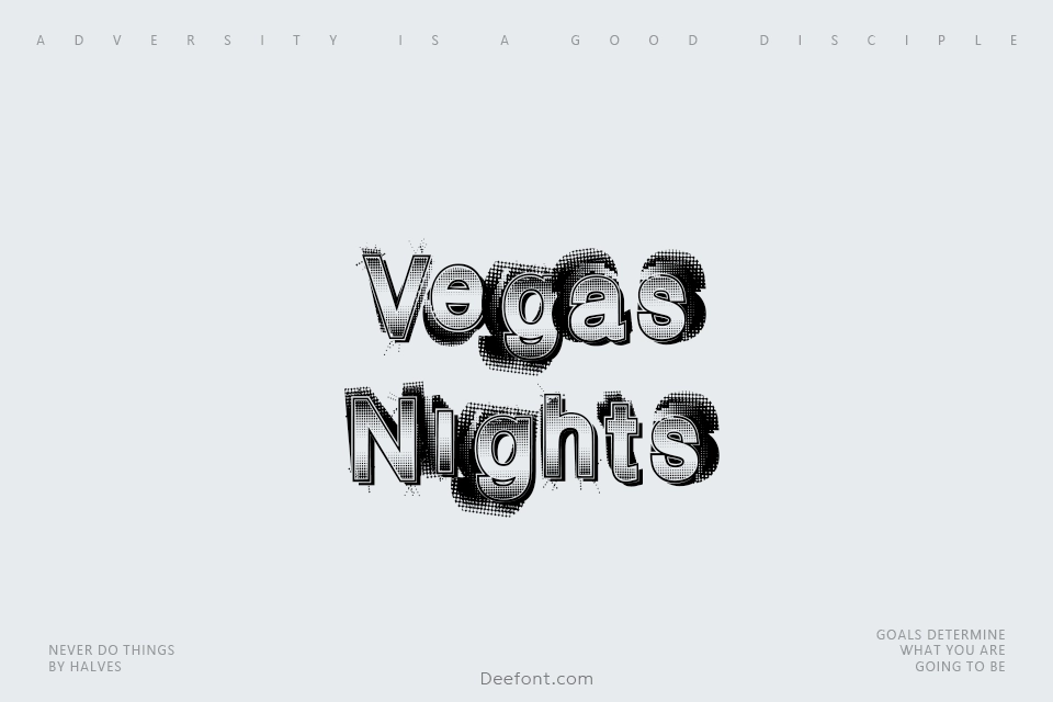 Vegas Nights is a bold, distorted display typeface that delivers striking visual impact with its heavily stylized letterforms. Created by Xerographer Fonts, this eye-catching font features exaggerated distortion effects perfect for headlines, event promotions, and entertainment design. The distinctive character styling combines modern digital aesthetics with dynamic visual flair, making it ideal for projects requiring strong visual presence and contemporary appeal.