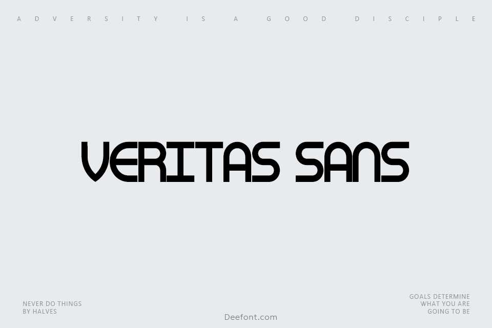 Veritas Sans is a contemporary sans-serif typeface that combines clean geometric forms with Japanese-inspired design elements. This modern, minimalist font features sleek letterforms and excellent readability, making it ideal for branding, web design, corporate communications, and creative projects. With its balanced proportions and sophisticated structure, Veritas Sans brings both elegance and functionality to any typographic application.