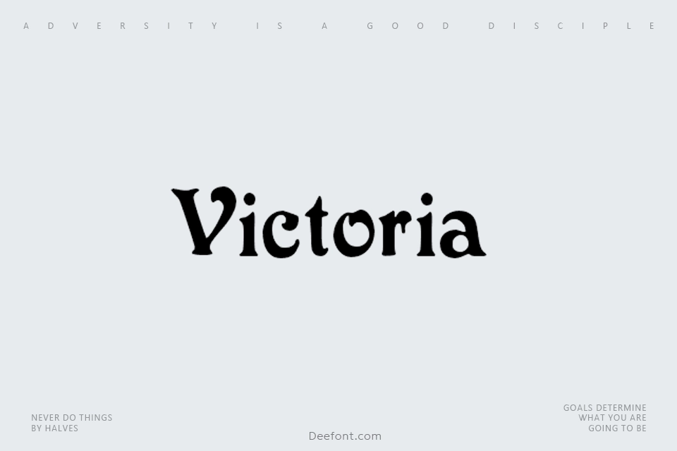 Victoria CAT is a bold retro-style display font designed by Peter Wiegel, featuring decorative and playful characteristics that combine traditional serif elements with ornate details. This fancy typeface brings a nostalgic 1960s-1980s aesthetic to your creative projects, perfect for eye-catching headlines, posters, and decorative typography applications.