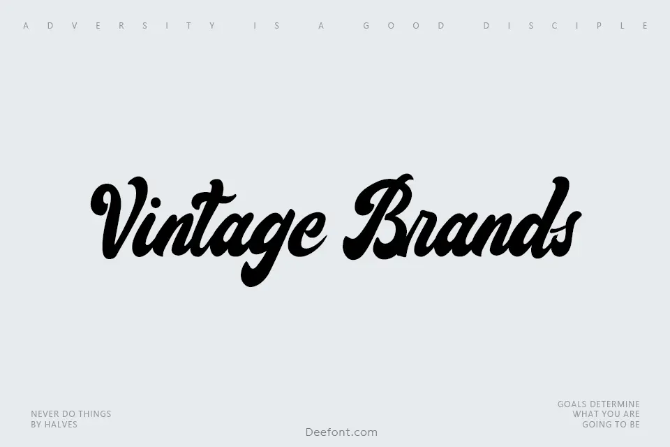 Vintage Brands is a bold retro brush script that blends smooth handwritten strokes with rugged, textured edges for an authentic vintage feel. Its flowing letterforms, dynamic swashes and nostalgic rhythm make it ideal for standout logos, badges, packaging, apparel prints and signage. Use this font to craft classic branding, event titles, posters or social media graphics that need a warm, old-school atmosphere with modern display impact.