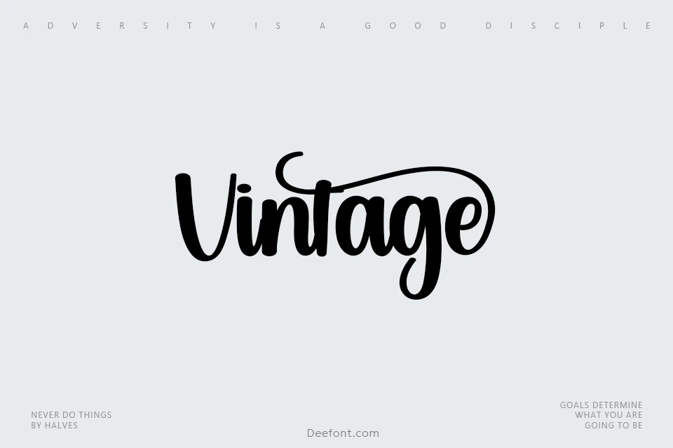 Vintage Calligraphy is presented as a luxury script typeface, characterized by its bold, flowing letterforms. The smooth, connected strokes create an elegant yet impactful appearance, suggestive of modern calligraphy with a vintage influence. Prominent, sweeping swashes extend gracefully from letters like the ‘V’ and ‘e’, enhancing its decorative and luxurious feel. This font balances a classic calligraphic spirit with substantial weight, making it ideal for high-end branding, sophisticated logos, elegant invitations, eye-catching headlines, and designs requiring a bold, flowing script that conveys both nostalgia and modern luxury.