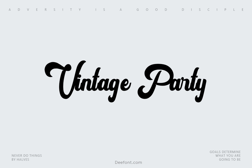 Vintage Party is a bold and playful script font inspired by retro party vibes, designed to bring a lively and old-school atmosphere to your creative work. Its unique curves and handcrafted style are perfect for invitations, posters, logos, and branding that aim to capture a festive or nostalgic feel. The free version offers a stylish selection of characters for personal use, while the commercial version unlocks the complete glyph set for professional projects. Vintage Party fits perfectly into vintage-themed, decorative, or party-related designs.