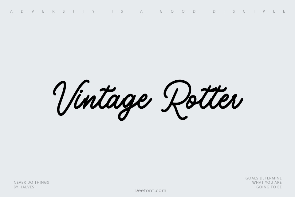 Vintage Rotter is an elegant monoline script font crafted for sophisticated design projects. Designed with professional branding in mind, it excels in wedding invitations, brand identities, and decorative typography. Each letter features a unique and beautiful touch, complemented by advanced OpenType features including alternates, ligatures, and comprehensive multilingual support. The font’s smooth, flowing lines make it perfect for projects requiring refined elegance and vintage charm.dafont+1