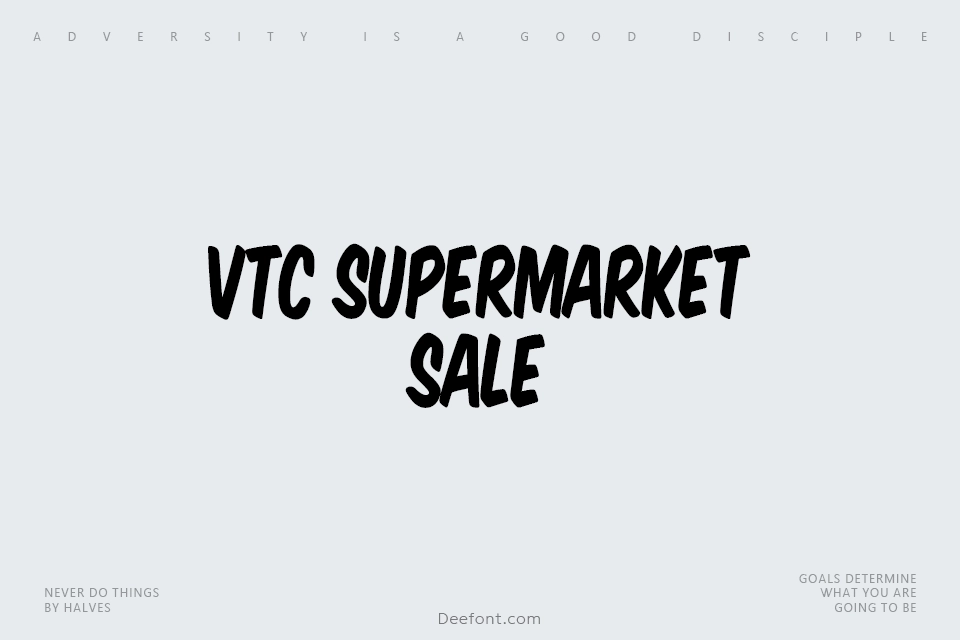 VTC Supermarket Sale is a vibrant and playful display font featuring bold, rounded letterforms with a comic sensibility. Designed with contemporary flair, this typeface excels at creating eye-catching titles, promotional materials, and casual designs. Its generous character set and multiple style variations, including italic, tall, and 3D versions, make it ideal for projects requiring friendly, approachable typography that captures attention and delivers visual impact.