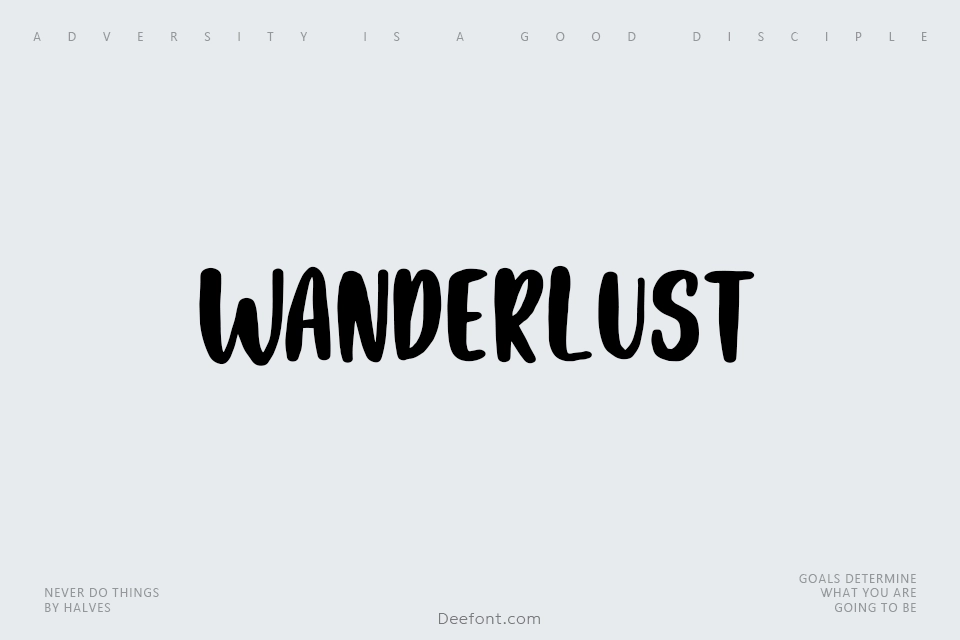 Wanderlust is an elegant script font designed for creative typography projects. This charming handwritten-style typeface features fluid strokes and natural letterforms, making it perfect for branding, logos, invitations, and social media content. With its sophisticated yet approachable aesthetic, Wanderlust brings a personal touch to any design project, combining modern sensibility with classic elegance for truly outstanding visual communication.