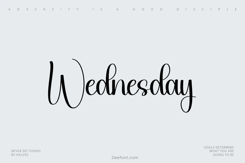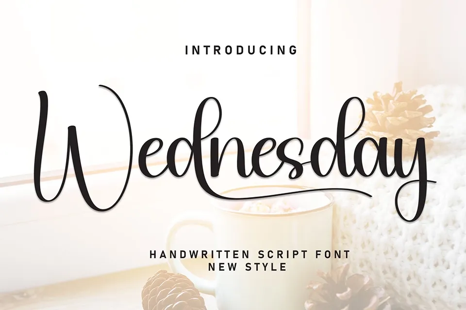 Wednesday Calligraphy Font is a relaxed, cursive, and gorgeous handwritten script font. Its elegant and stylish strokes make it perfect for wedding invitations, thank you cards, quotes, greeting cards, logos, business cards, product packaging, and any project that needs a handwritten touch. With its timeless and versatile design, this font brings a charming, personal feel to both digital and print creations.