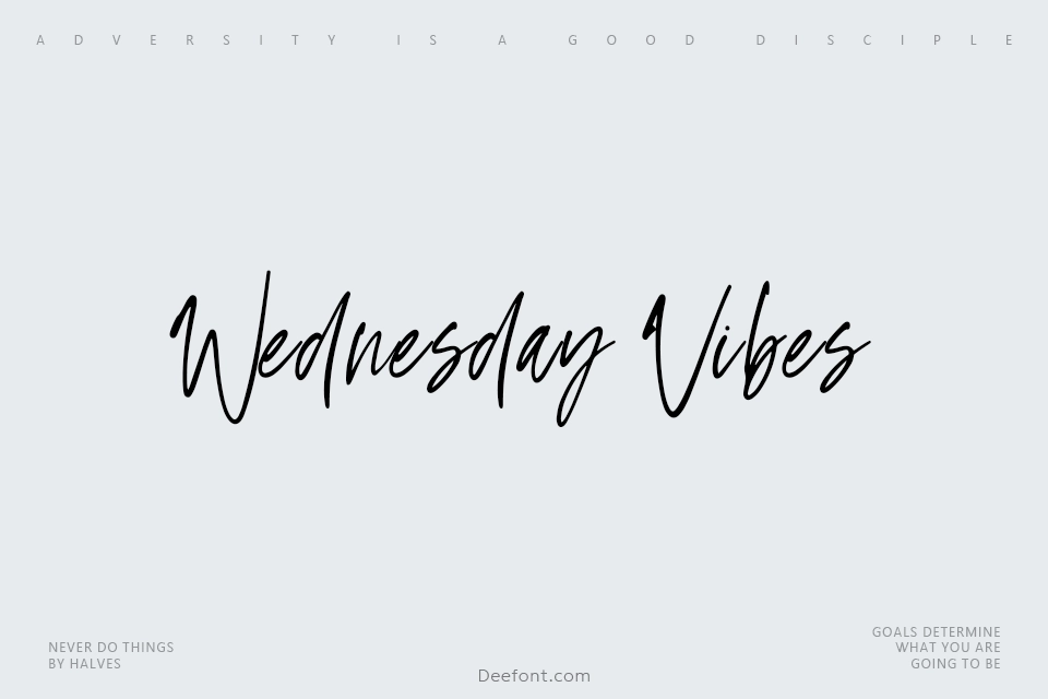 Wednesday Vibes is a modern handwritten font that brings natural elegance and contemporary style to your creative projects. Perfect for logos, branding, invitations, wedding designs, social media posts, and product packaging, this versatile typeface adds a personal and artistic touch. Its clean strokes and friendly appearance make it ideal for designers seeking to elevate their typographic work with authentic hand-lettering charm.