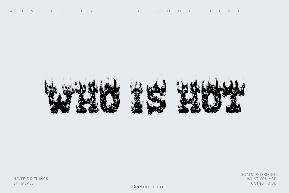 Who Is Hot is an eye-catching display font designed with fiery aesthetics and bold character forms. This fancy typeface features dynamic stroke variations, perfect for creating impactful headlines, promotional materials, and creative designs that demand attention. With its vibrant flame-inspired visual language, the font brings energy and personality to branding projects, posters, and decorative typography applications.