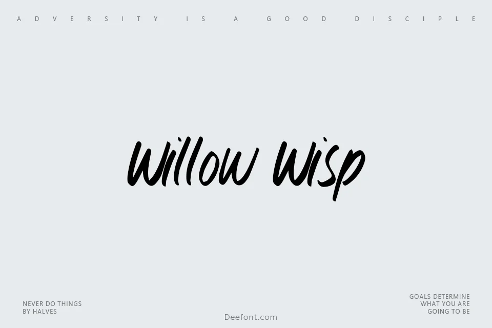 Willow Wisp is an elegant and flowing handwritten script font designed by Zaffar Ansari. This graceful typeface features smooth, connected letterforms with organic curves and a fluid writing style reminiscent of calligraphy. Perfect for wedding invitations, greeting cards, branding projects, and creative typography applications that require a delicate, sophisticated touch. The font supports extensive character sets including uppercase, lowercase letters, numbers, accents, and punctuation marks, making it versatile for various design contexts.